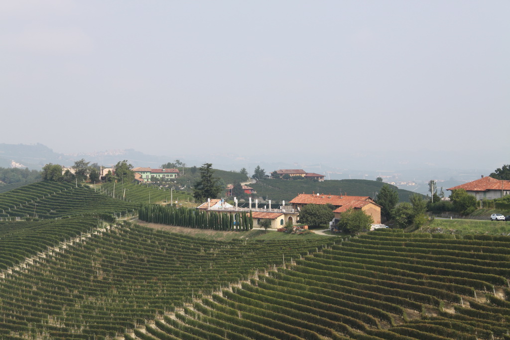 Der Samstagmorgen brachte ein für italienische Verhältnisse reichliches Frühstück und einen Himmel, der auf trockenes Wetter hoffen liess. Wer Lust hatte und früh genug aufgestanden war, konnte sogar noch einen Bummel durch den Markt in Alba machen. Vom Savona aus meisterten wir die etwa 1,2 km zum Castelli in gefühlten 2 Stunden. Unglaublich wie viele Menschen und Autos sich in diesem Städtchen tummelten. Dies war auch der Grund, dass es seine Zeit dauerte, bis ein geeigneter Sammelplatz gefunden werden konnte, aber letztendlich durften wir uns dann vis-à-vis der Autoshow aufreihen, was auch Gelegenheit für ein paar schöne Fotos und eine geordnete Abfahrt Richtung Strada Romantica ermöglichte. Leider war Larry so schnell durch die ersten Kreisel entwischt, dass bereits nach kurzer Fahrt die ersten Fahrzeuge den Anschluss an den Konvoi verloren. Zum Glück aber waren wir alle mit einer Beschreibung der Route und der Adresse des Endziels ausgestattet, sodass letztendlich alle das nächste Highlight fanden. Die Fahrt führte uns nach kurzer Zeit in die hügelige Landschaft, welche links und rechts gesäumt war von Weinreben und Haselnussbäumen soweit das Auge reichte. Dass es für den vielen Wein, welcher auf der ganzen Welt konsumiert wird, schon den einen oder anderen Rebstock braucht, war mir klar, trotzdem war die Landschaft beeindruckend, speziell und wunderschön zugleich, deckt diese Region ja nur gewisse Sorten ab. Mit ein paar kleinen Zwischenstopps zur Sammlung der Truppe und Bewässerung der Rebstöcke/Haselsträucher, ging die Fahrt auf und ab durch die Hügel und Dörfchen, über die schmalen Strassen und Gassen der Strada Romantica, bis wir schliesslich alle das Weingut Francone erreichten.