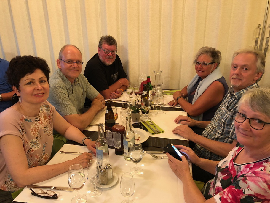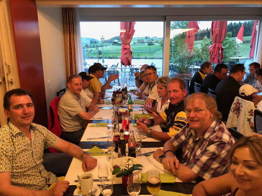 Nach der Besichtigung haben wir noch kurz etwas getrunken. Dann ging es weiter. Lesley wollte noch eine kurze Ausfahrt machen und ein Teil fuhr direkt nach Längenbühl zum Restaurant Grizzly Bär. Dort erwartete uns ein Apéro dass wir auf der Terrasse zu uns nahmen. Als wir alle wieder zusammen waren ging es ans Nachtessen. Dort wurden uns Spare Ribbs mit Frites serviert. Gemütlich liessen wir den Abend ausklingen und um 9h00 machten sich die meisten auf den Heimweg.