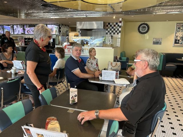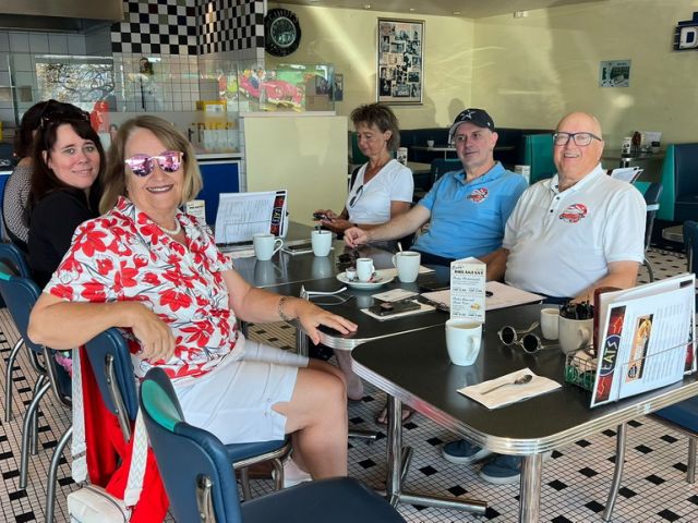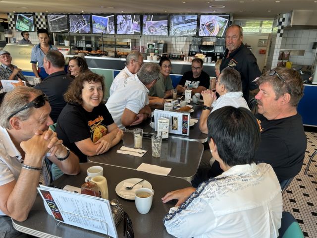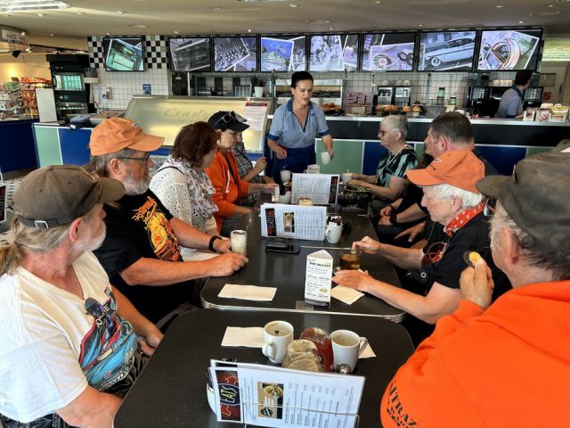 40 Personen in 21 Autos besammelten sich um 9 Uhr im Cindy’s Diner auf der Raststätte Herrlisberg über dem Zürichsee.